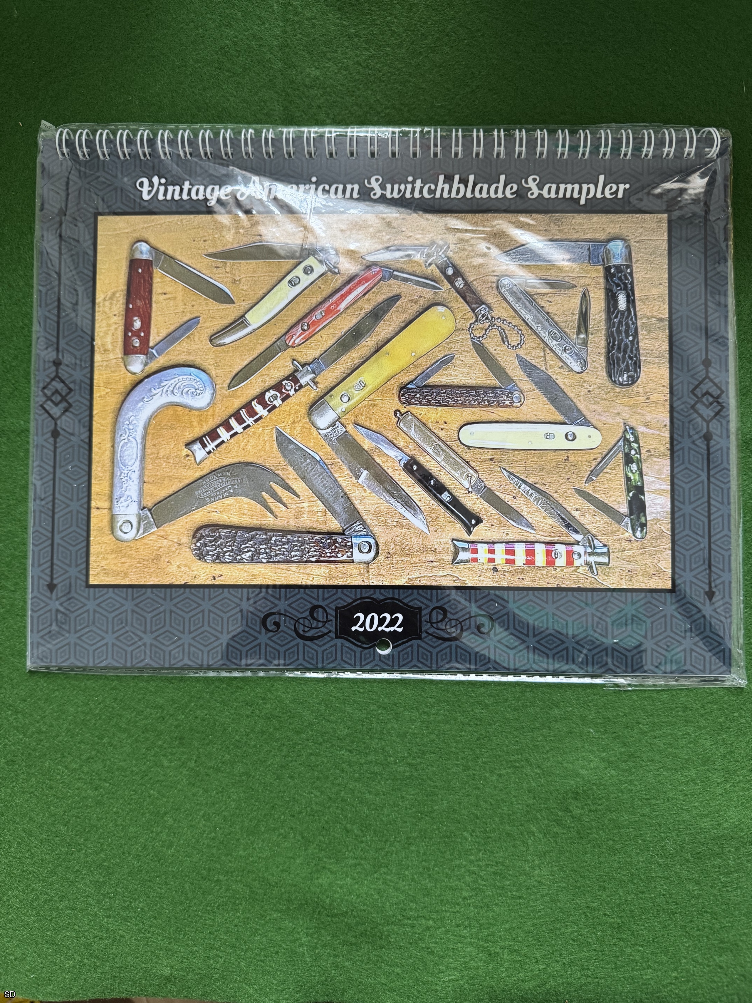 Up for bidding is a 2022 Alex Kovach RIP (knfcollector) Vintage American Switchblade Sampler Calendar. It is still sealed in the plastic cover with his business card. This is an Awesome piece of memorabilia to add to anyones vintage American switchblade collection, knife collection or knife memorabilia collection!